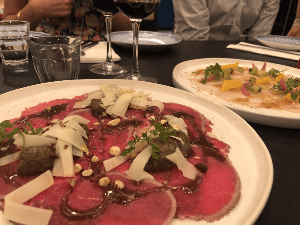 Après avoir découvert la grande terrasse et le bar design… Place à la salle intérieure du restaurant et à sa décoration à l’italienne. Une véritable version contemporaine de la traditionnelle trattoria italienne, avec des tables et une ambiance conviviale, propice aux moments de partage et de fêtes entre amis. Mais c’est surtout dans les assiettes que MIAMICI se démarque et nous séduit !